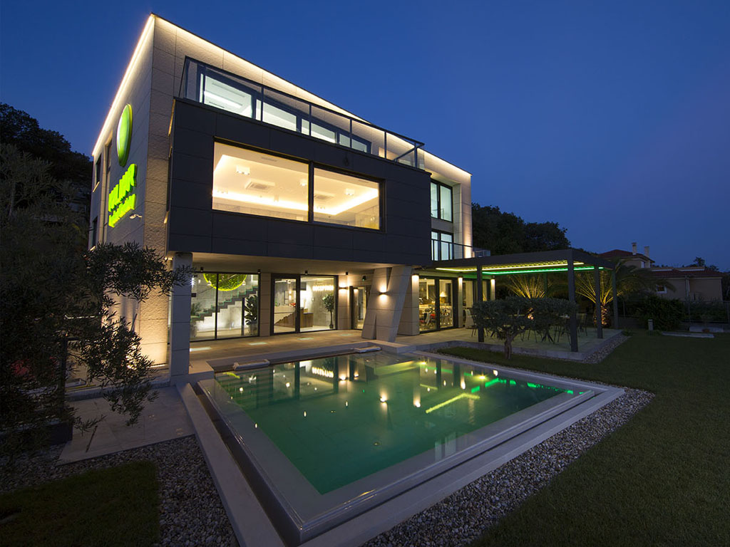 KNX integration and control is performed through the most modern systems for the integration of the heating / cooling control, lighting control, blinds control with the possibility of shadowing, surveillance, multimedia, pool technology, alarm control and automation engineering.