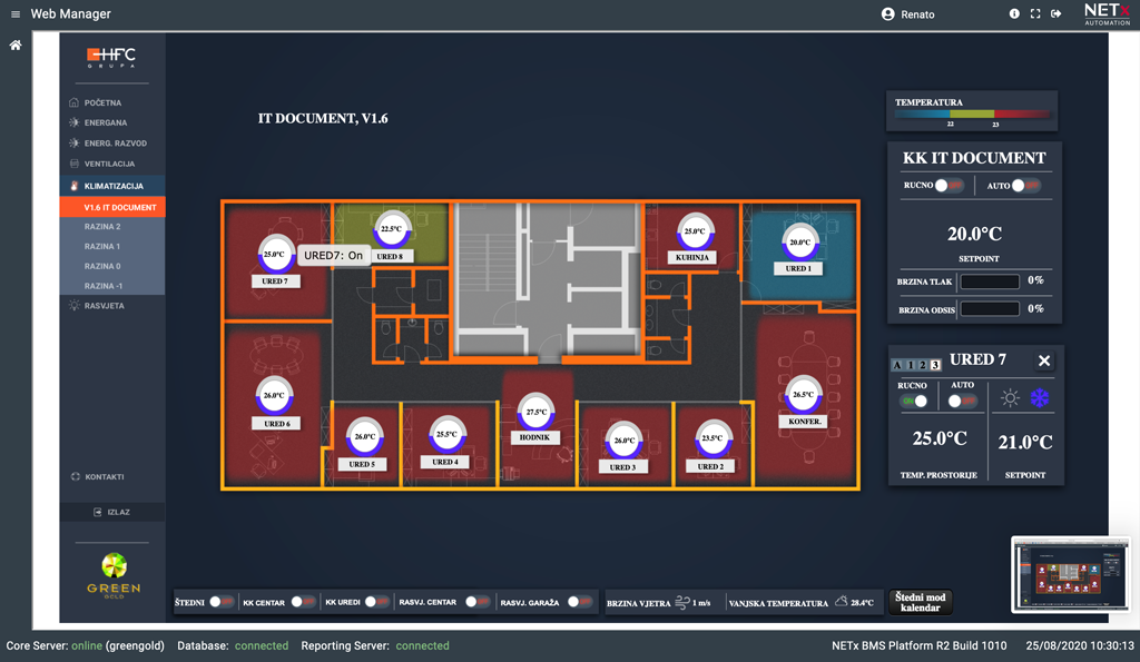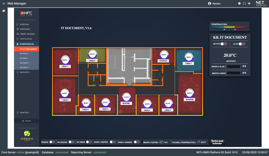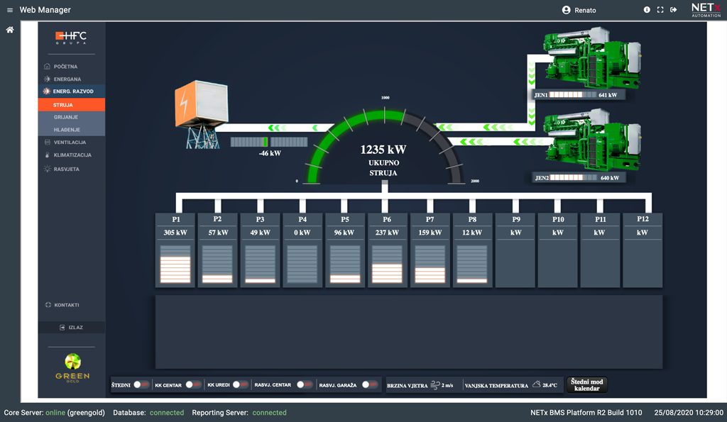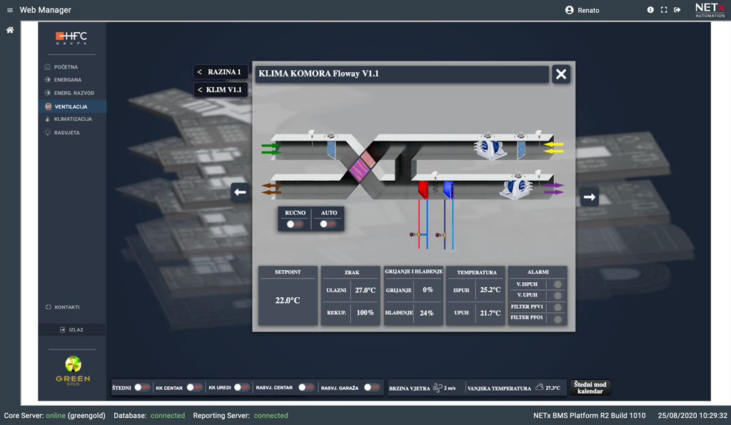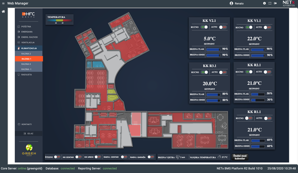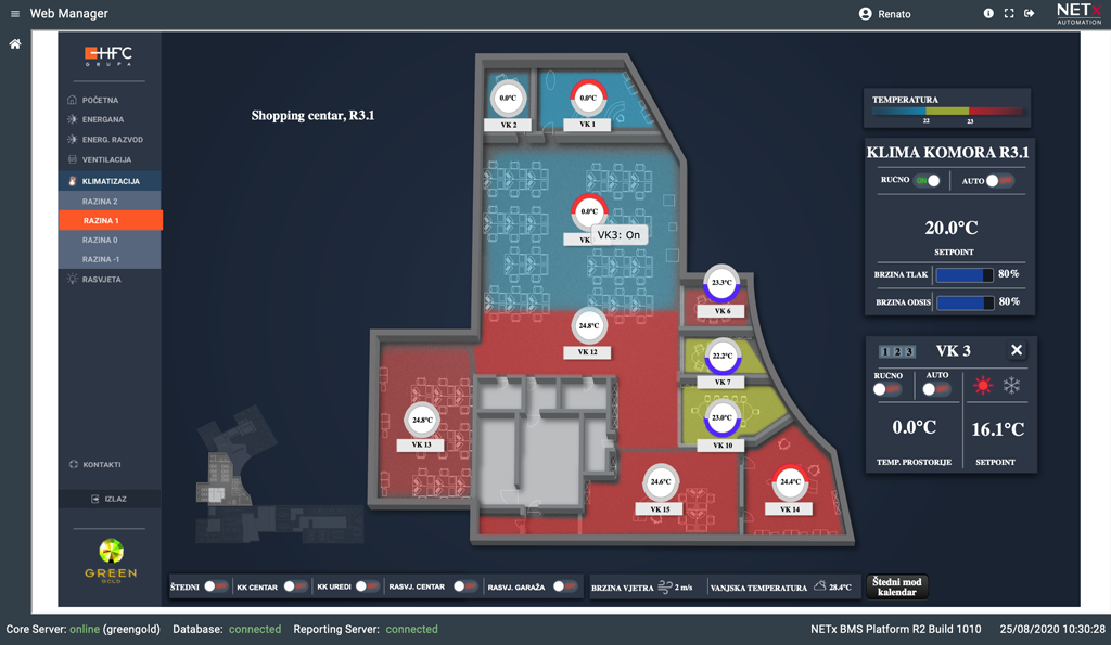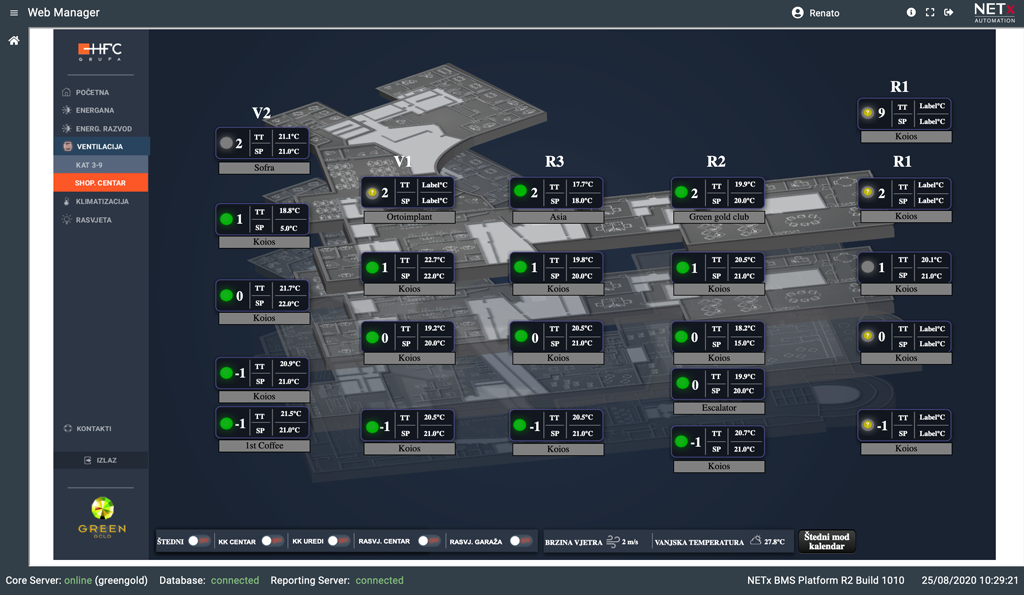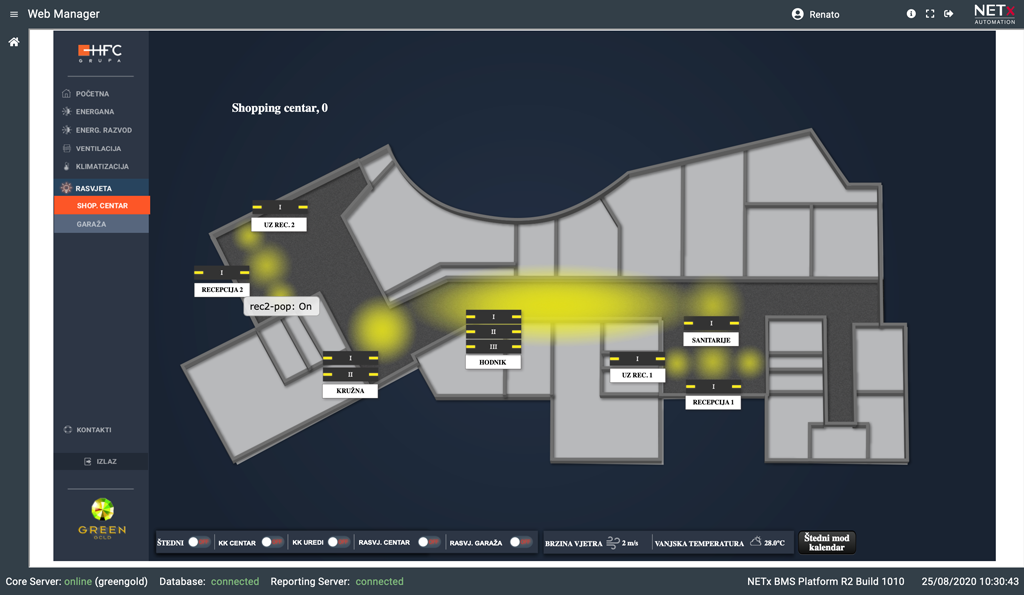 Scensko upravljanje GreenGold centra omogućava visoku dinamiku objekta, te stvaranje promjene ambijenta uvjetovanim vremenskim ili svjetlosnim utjecajem.